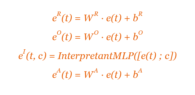 Equation 2 — Semiotic embedding decomposition. R = representamen, O = object, I = interpretant, A = attractor. Semicolon denotes concatenation.